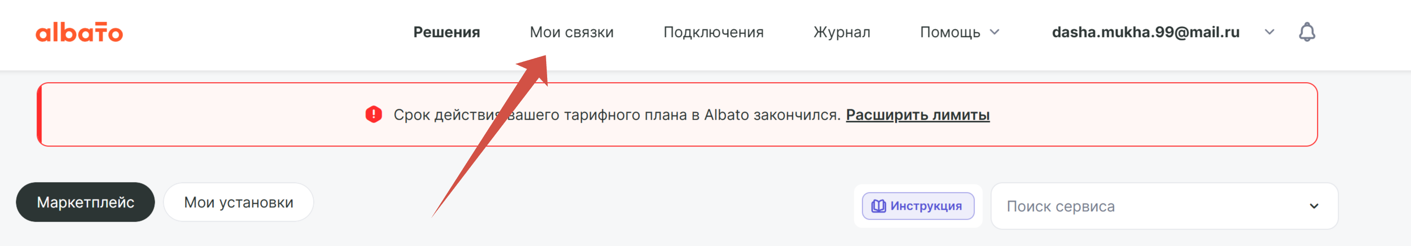 Зайдите в раздел "Подключения" внутри личного кабинета Albato и нажмите "Добавить подключение";