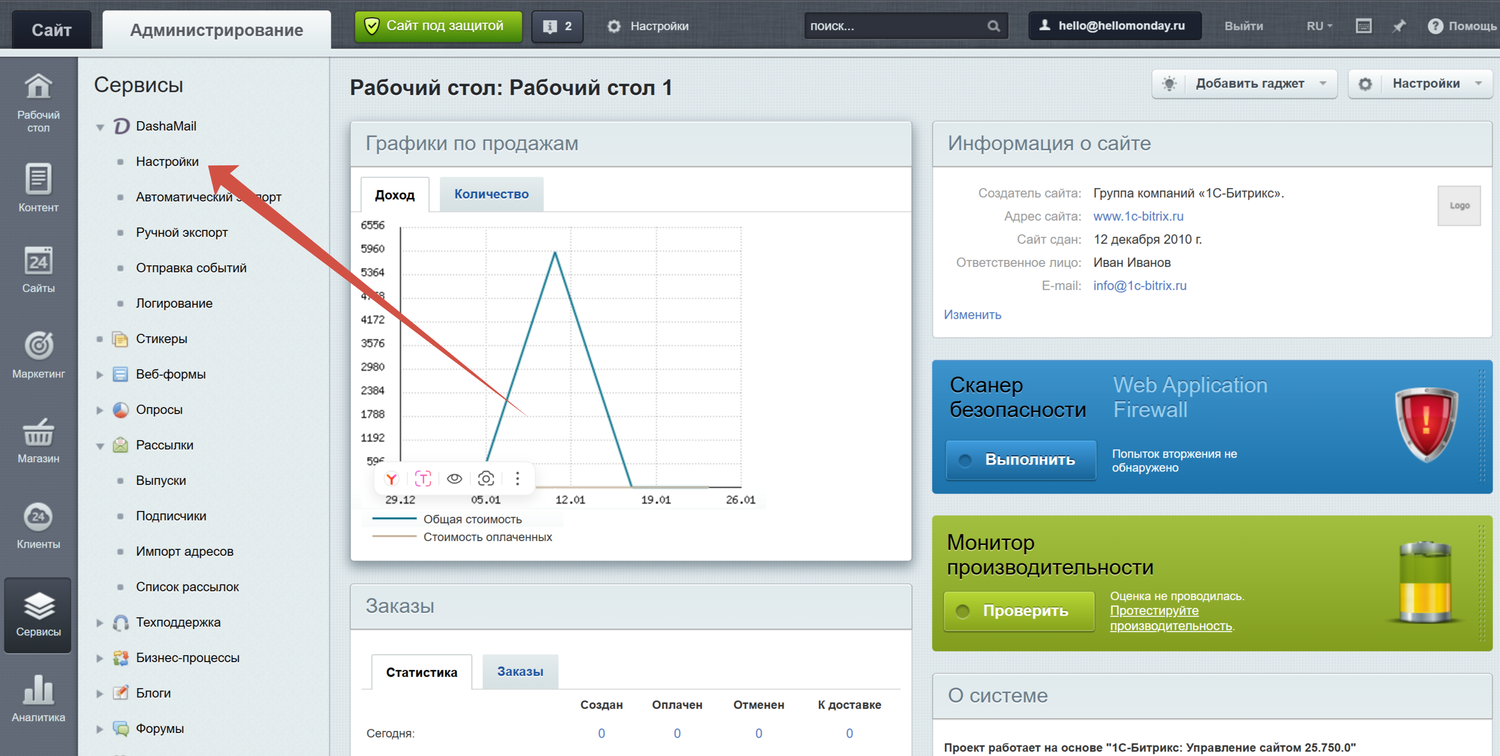 Модуль предназначен для выгрузки клиентской базы из интернет-магазинов на платформе CMS Bitrix в базу данных сервиса DashaMail и предоставляет следующие возможности: